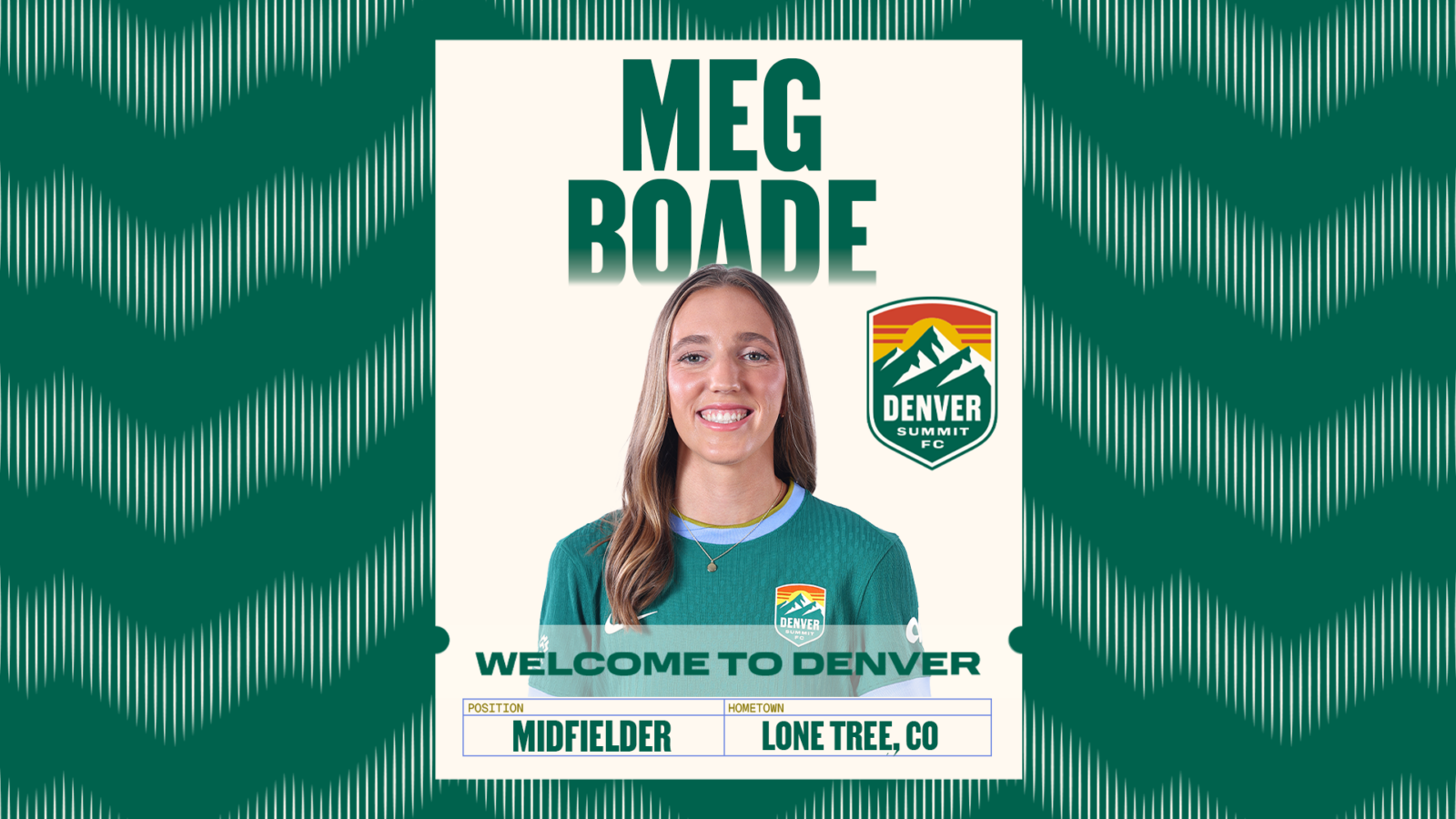 Denver Summit FC announced today the signing of midfielder Meg Boade, adding another Colorado product to the roster ahead of the club’s inaugural season in the National Women’s Soccer League in 2026. Boade, 23, joins Summit FC after time with Washington Spirit and Gotham FC in 2025.